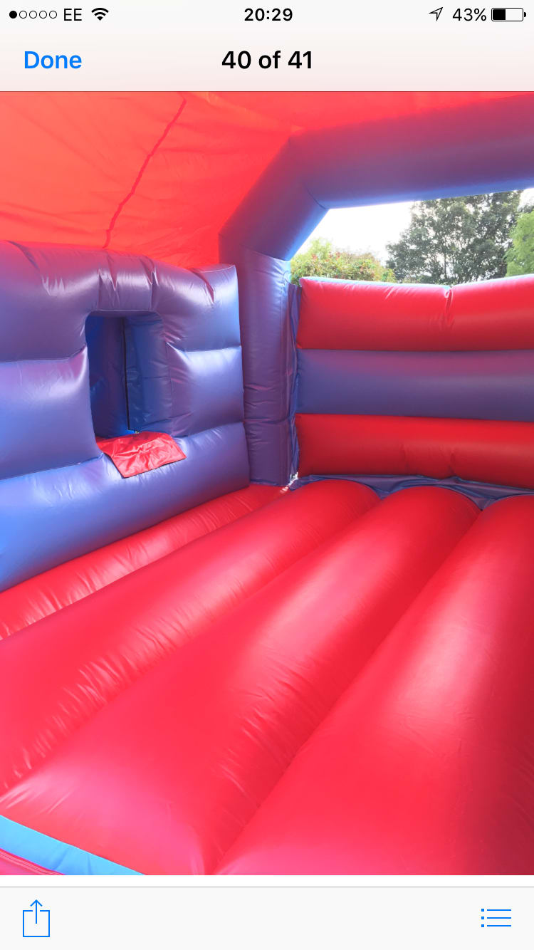 This deluxe castle has a built in rain cover to keep light showers obey and also acts as a shade to keep the castle cool in the sunshine.