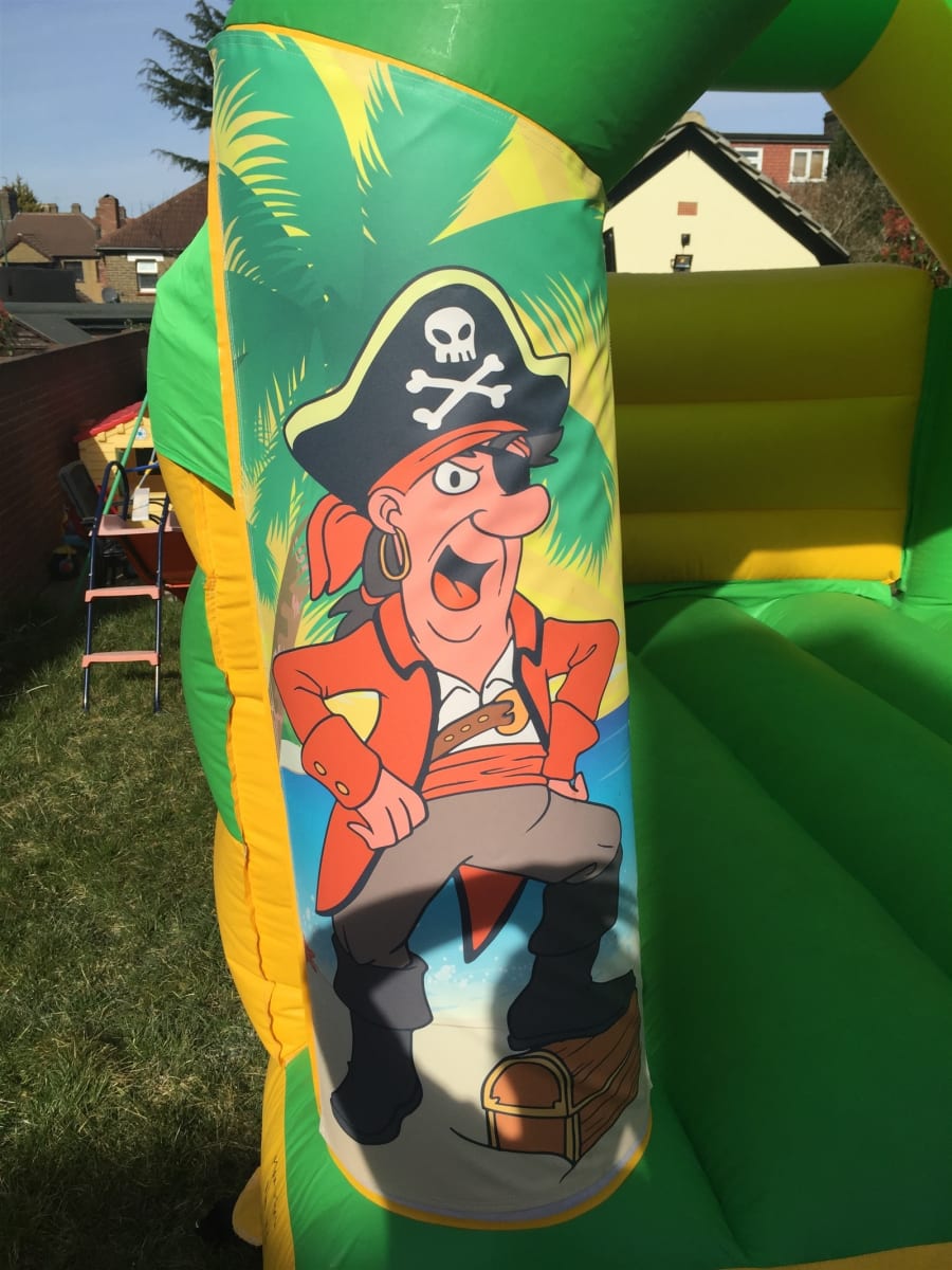 This is our 11x15 foot Pirate themed bouncy castle to hire. It's commonly booked for boys parties, but there's no reason why little girls can't enjoy it too. Brilliant colours, a great size and not so tall that it can't go in most halls at 9 1/2 foot tall.