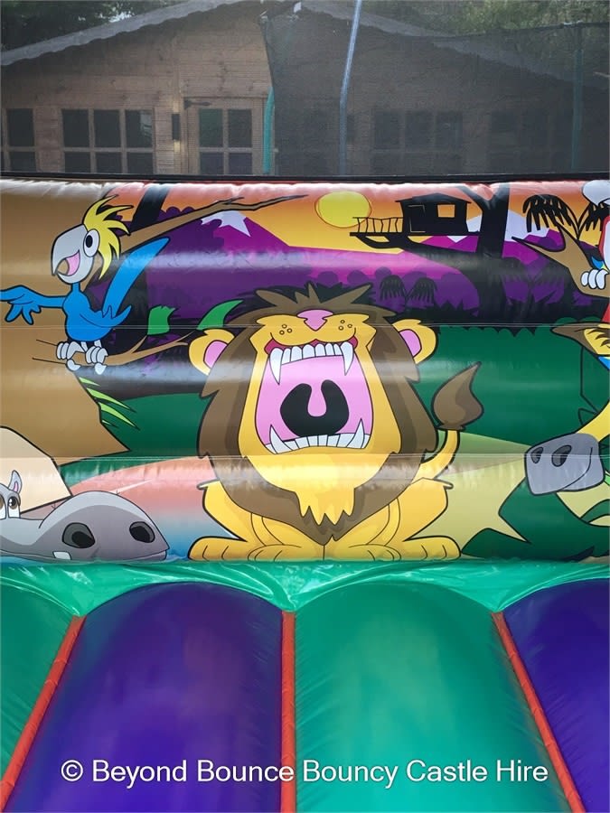 This jungle bouncy castle for hire is brilliant for birthdays and works well on all kinds of other occasions too. It will be a roaring success with pre-school, playgroup or young primary classes, and lions always go down well with cubs (and brownies too!). And when it comes to fundraising – especially for nature and environmental charities – the jungle and wildlife is the perfect theme.