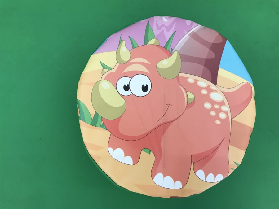 Consists of slide, double rocker, assortment of soft shapes with colourful dinosaur patten all over them.