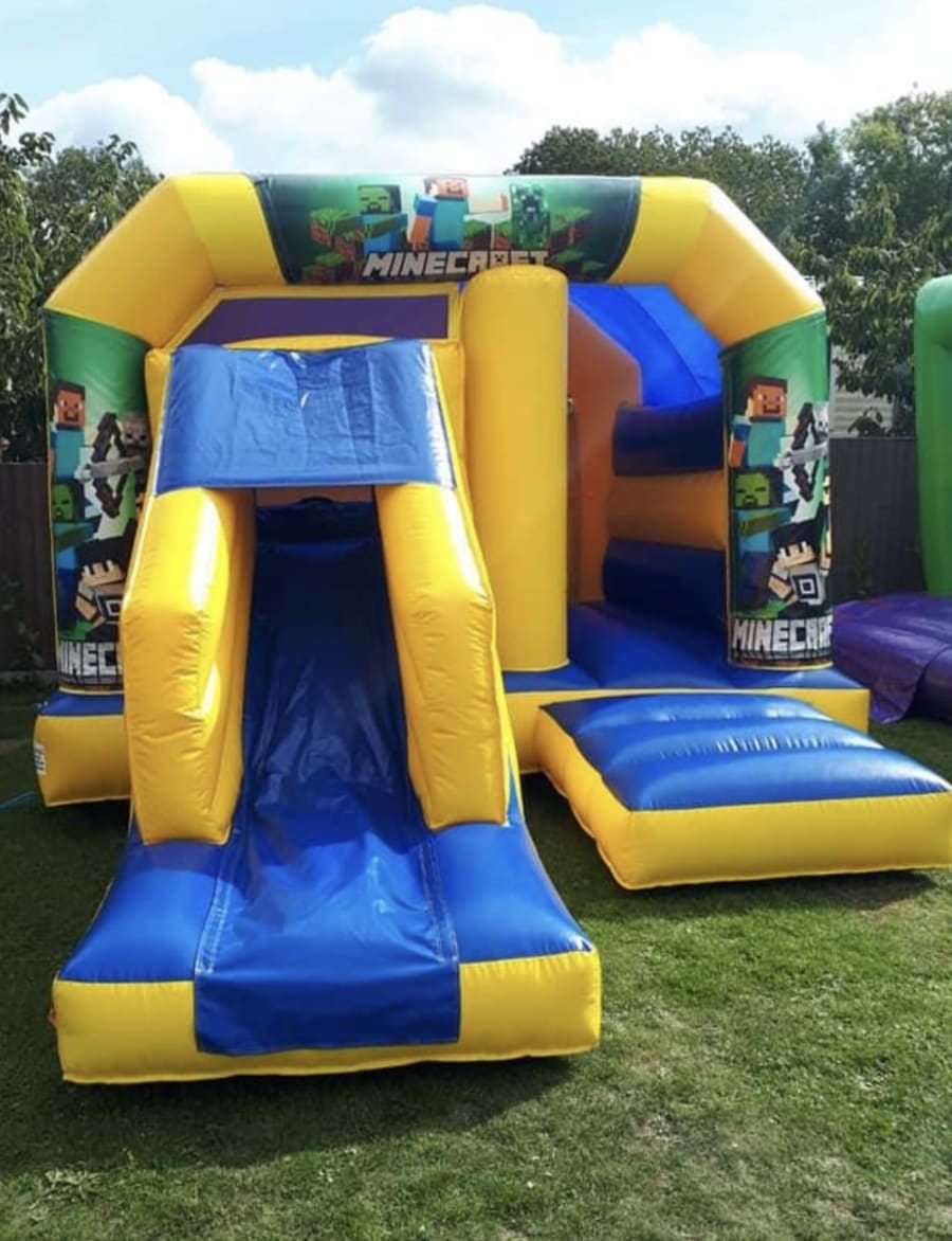 Minecraft bouncy castle can also come as a side slide or front slide to fit most gardens.