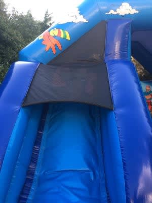 Shiver me timbers its our New Pirate Slide Bouncy Castle. This Pirate theme is a great idea for any party as not only can you bounce around inside the castle, but also slide down the deck on the internal slide.