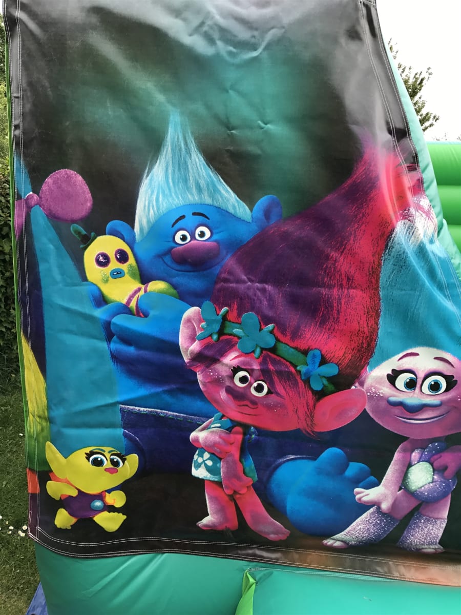 We also have a trolls bouncy castle with a slide.