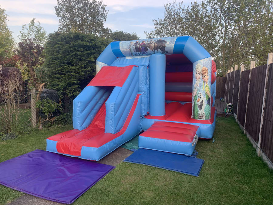 Planning on holding a Frozen themed birthday party then look no further with this amazing Frozen bouncy castle including a front slide. The bounce area is the same jumping space as a standard bouncy castle with an attached forward facing slide so double the fun.
