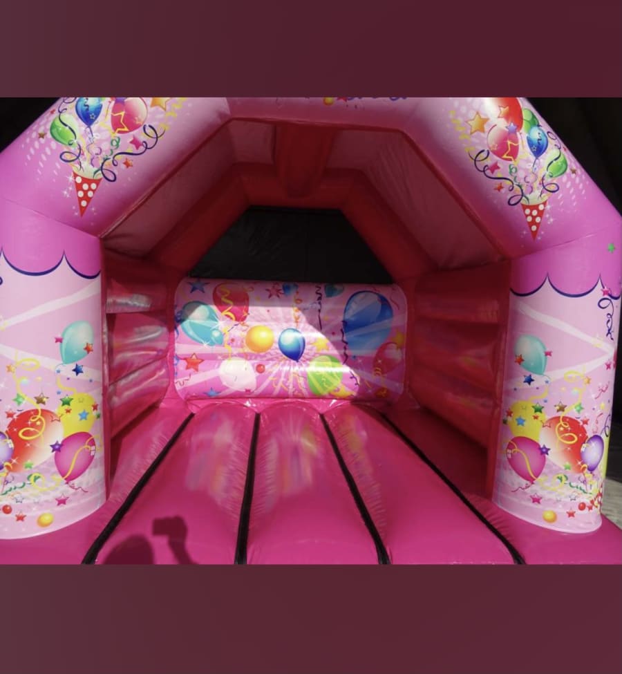Slim Pink Party Time Bouncy Castle for hire in Gravesend, Chatham, Rochester, Gillingham, Longfield and across Kent