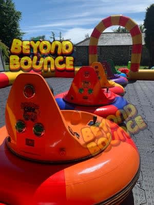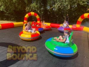 Our 8m x 8m inflatable track creates a thrilling arena for up to five riders at a time, with each car featuring bright LED strips and flashing front lights for an eye-catching experience. Unlike traditional dodgems, these bumper cars run on powerful rechargeable batteries that last all day, meaning no interruptions for charging or changing batteries during your event.