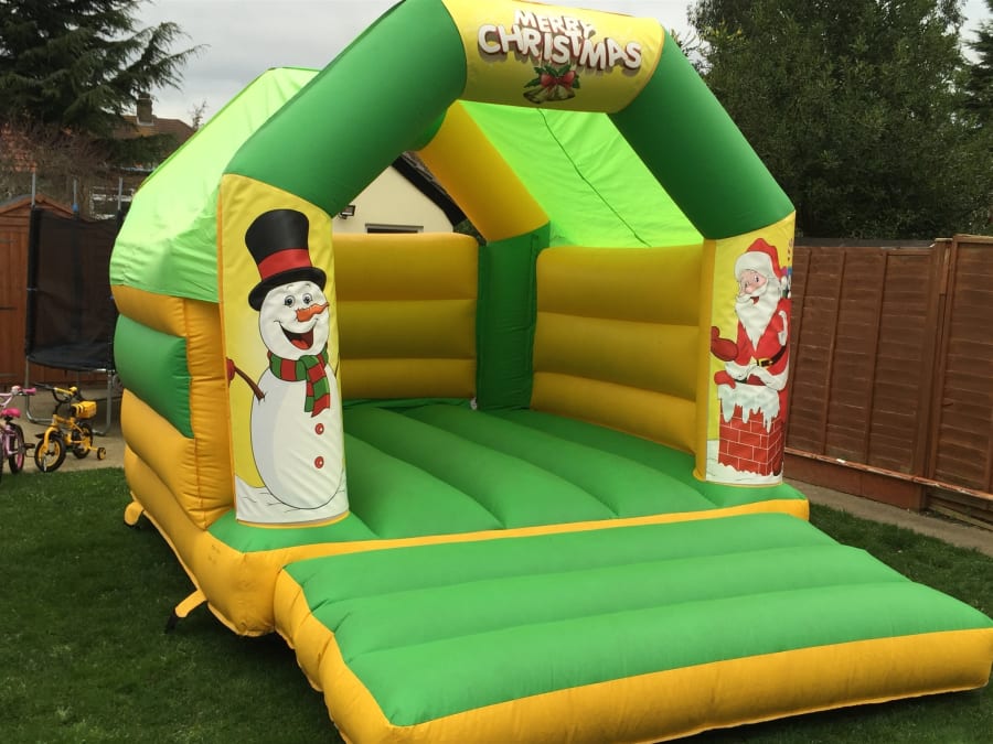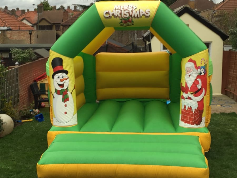 Our christmas themed bouncy castle is perfect for childrens christmas parties and christmas events. Featuring Santa and a snowman!