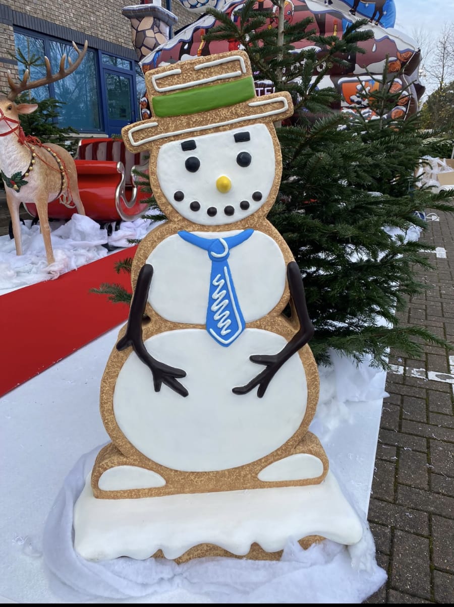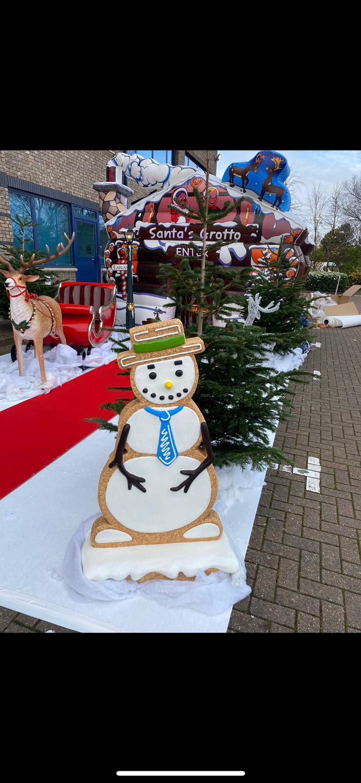Made from durable resin, this gingerbread snowman for hire in Gravesend, Chatham, Rochester, Gillingham, Longfield and across Kent is built to last. The only thing that will melt is the hearts of everyone who sees him. Why not make him part of your store seasonal window display or put him out on the shop floor to spread the Christmas cheer. There are lots of other gingerbread figures to choose from, including a spectacular Santa sleigh, a magnificent gingerbread throne and even a gingerbread bench for photos or just a break from all that partying! Talk to our team about the best festive hire in Kent.
