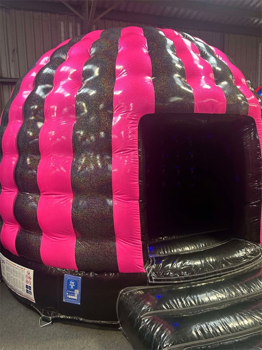 For a party with extra sparkle and excitement, hire the Pink & Black Glitter Disco Dome from Simply Bouncy Castle Hire. Contact us today to bring the music, lights, and fun to your next event!
