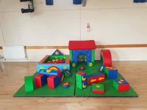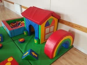 Includes a rainbow coloured house, archway, number of building blocks and mats in this unique soft play hire only available form Simply Bouncy Castle Hire.