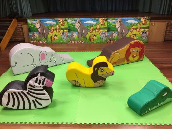 This popular Jungle Soft Play set comes complete with 5 large soft play pieces on green mats. This soft play includes a lion and Zebra Rockers, Elephant and lion slide and a crocodile all the characters and bright and friendly. Perfect for ages 0-6 years old including toddler groups, nursery's, 1st,2nd,3rd,4th and 5th birthday party's.