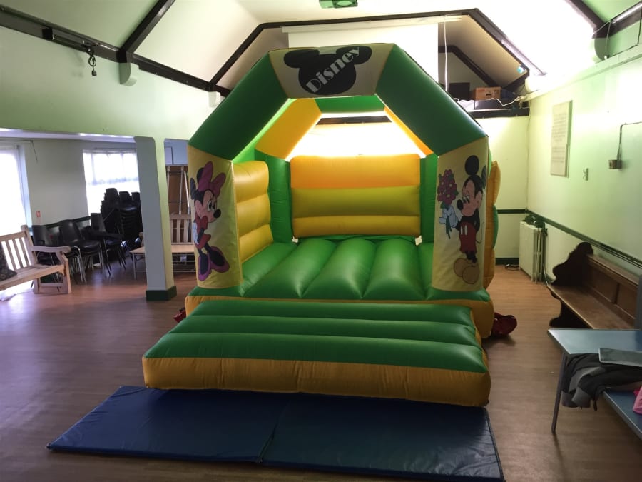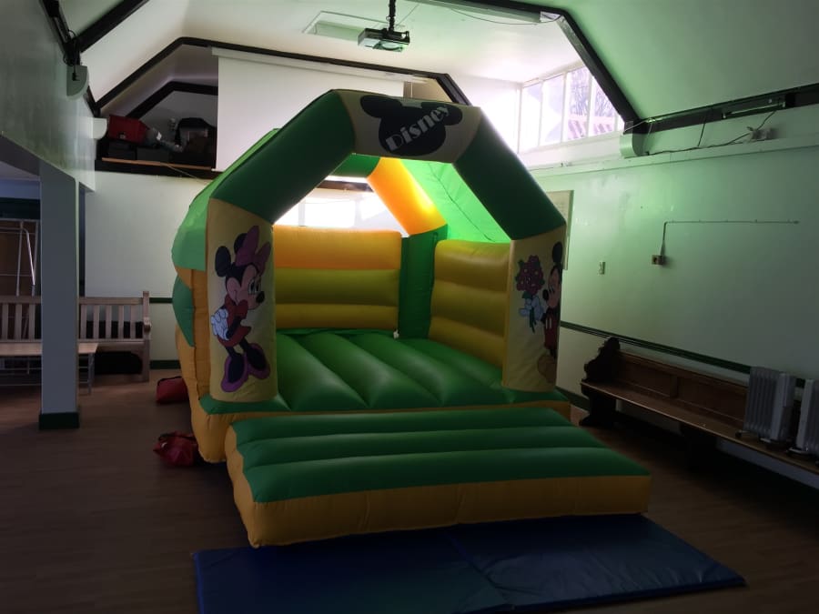 This is our 11x15 foot Mickey Mouse Themed bouncy castle to hire. This is really cute for younger children, both girls and boys and a classic theme that's always well received!