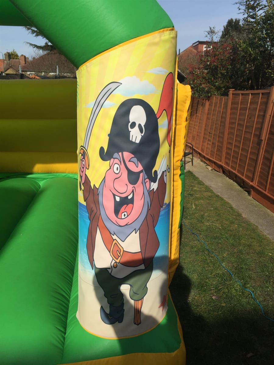 This is our 11x15 foot Pirate themed bouncy castle to hire. It's commonly booked for boys parties, but there's no reason why little girls can't enjoy it too. Brilliant colours, a great size and not so tall that it can't go in most halls at 9 1/2 foot tall.