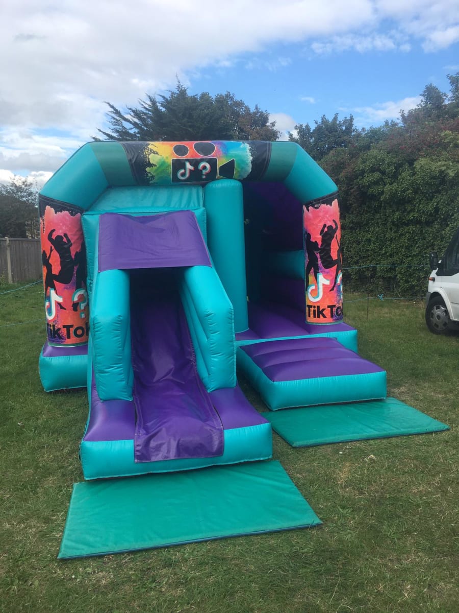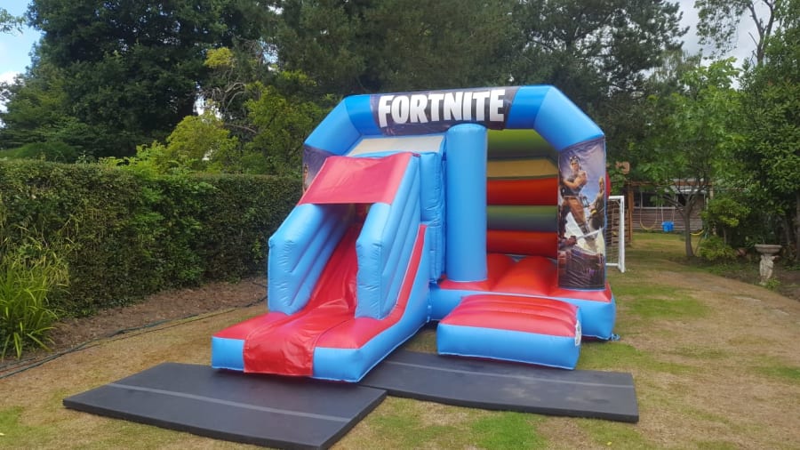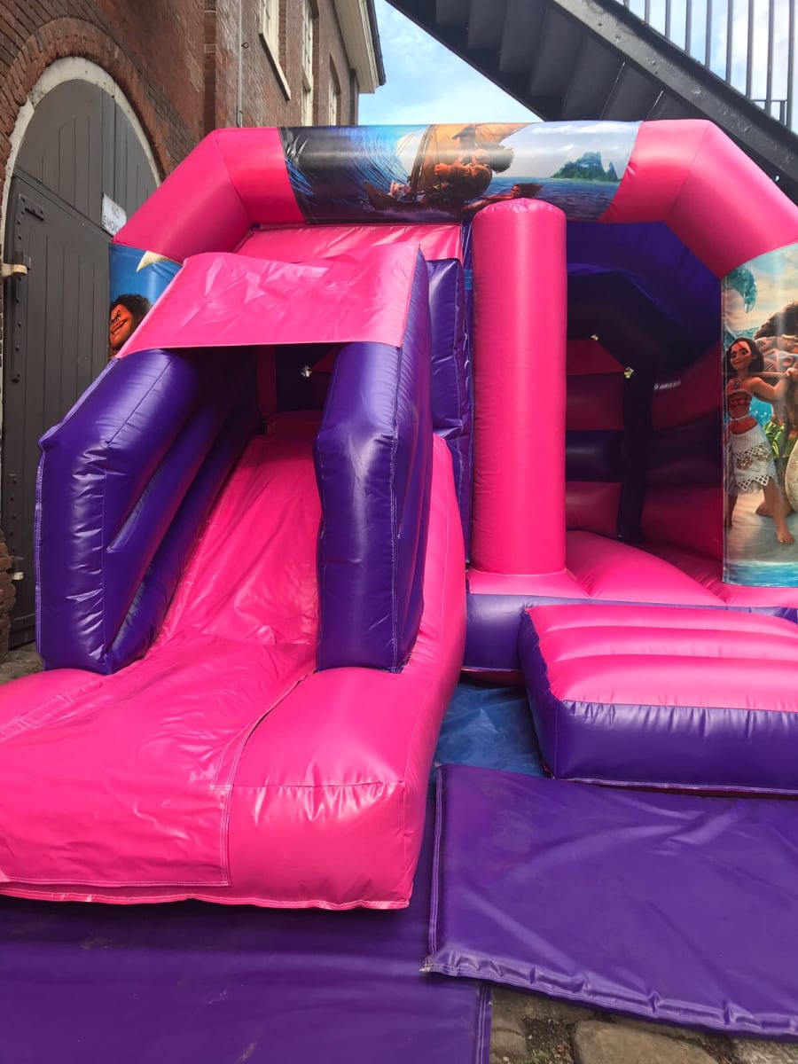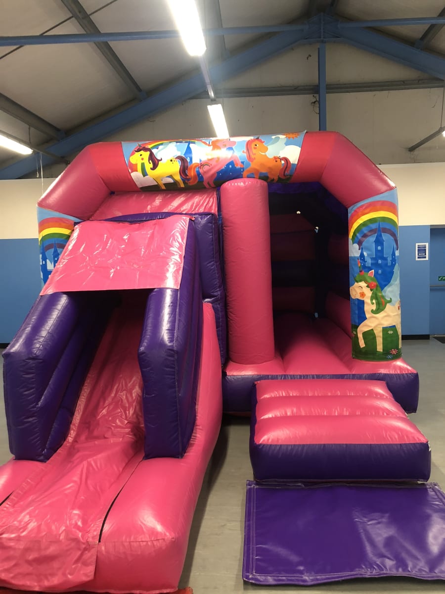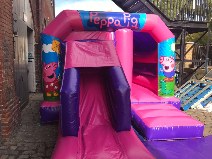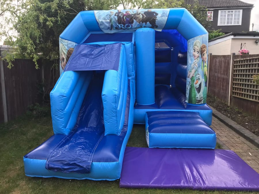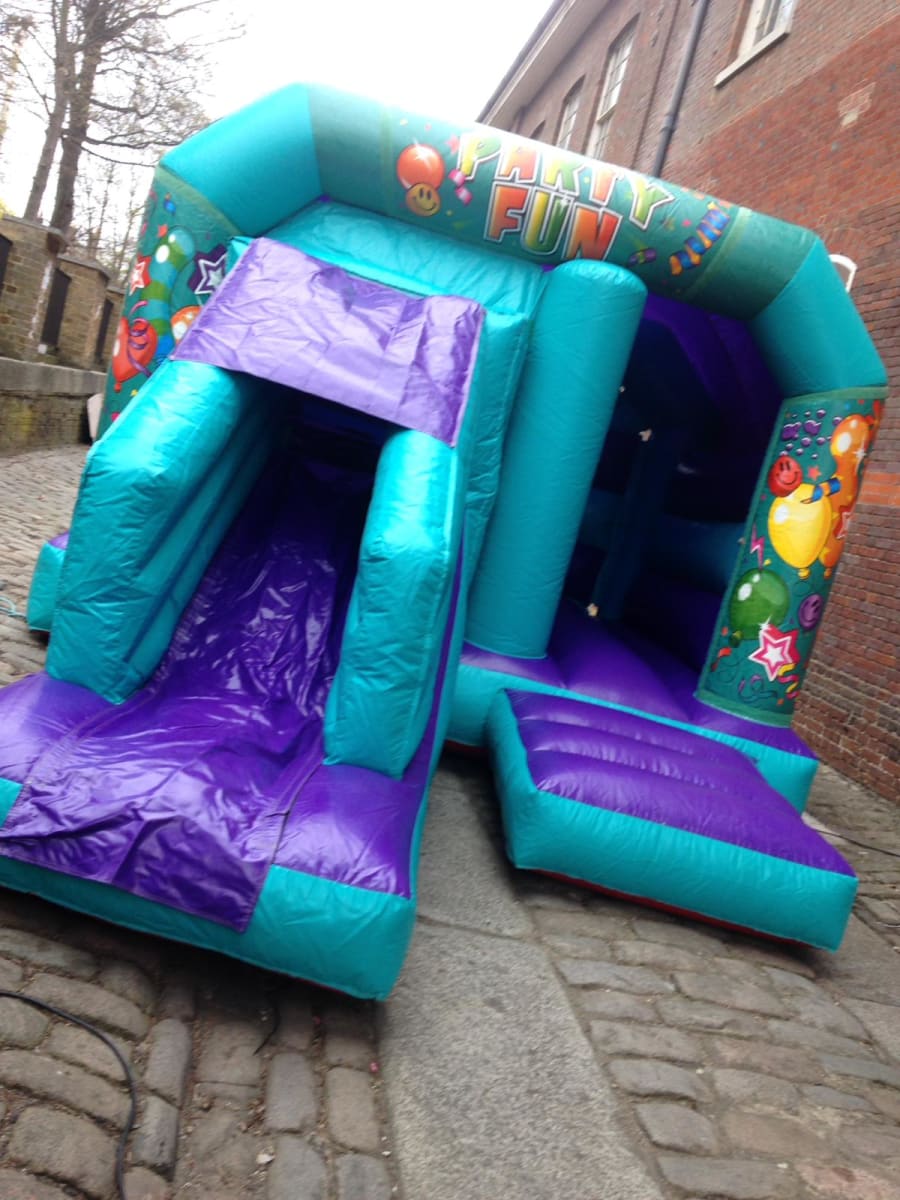 This package should be a simple way of choosing any colour 12ft Wide x 18ft Long inflatable with a Front Slide plus your choice of Theme. Each theme consists of 3 Velcro banners that are quickly attached to the top and front sides after inflating the bouncy castle replacing the printed party theme.